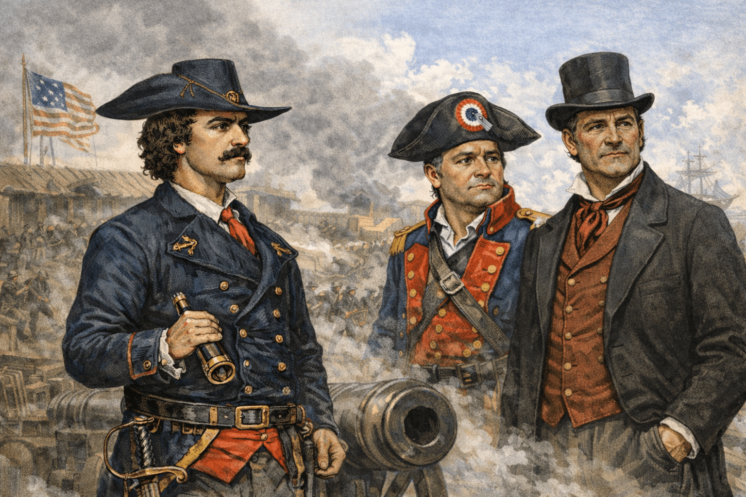 Renato Beluche provides a second, independent example of Baratarian competence with a documented background. Born in New Orleans in 1780, he went to sea early, appears in records tied to Spanish naval service by 1802, and later moves into privateering. The Napoleonic connection is properly framed as an environment rather than a personal uniform. Beluche comes up in a militarized Atlantic where blockade, privateering, and coastal warfare rewarded logistics, discipline, and gunnery skill.